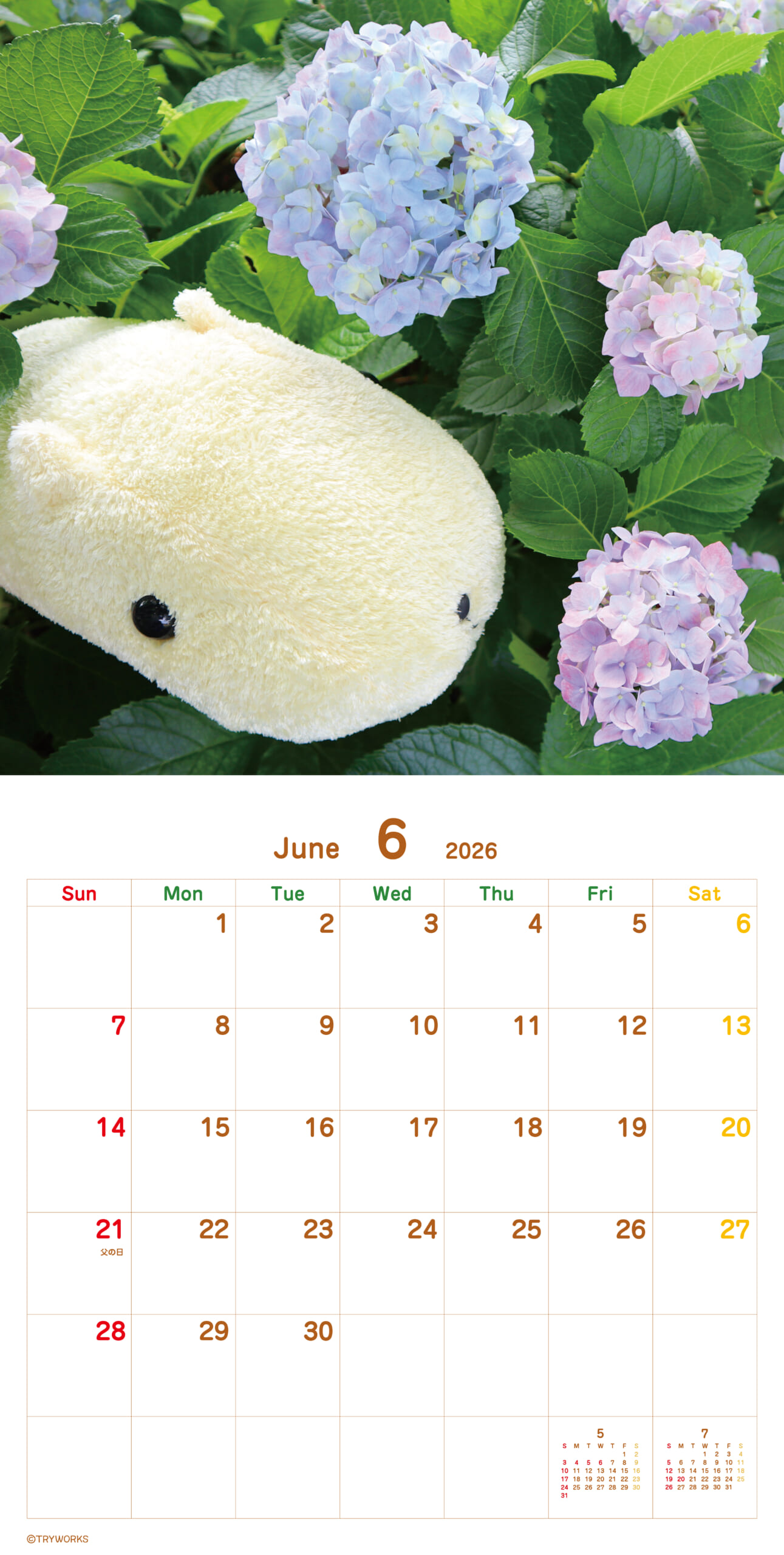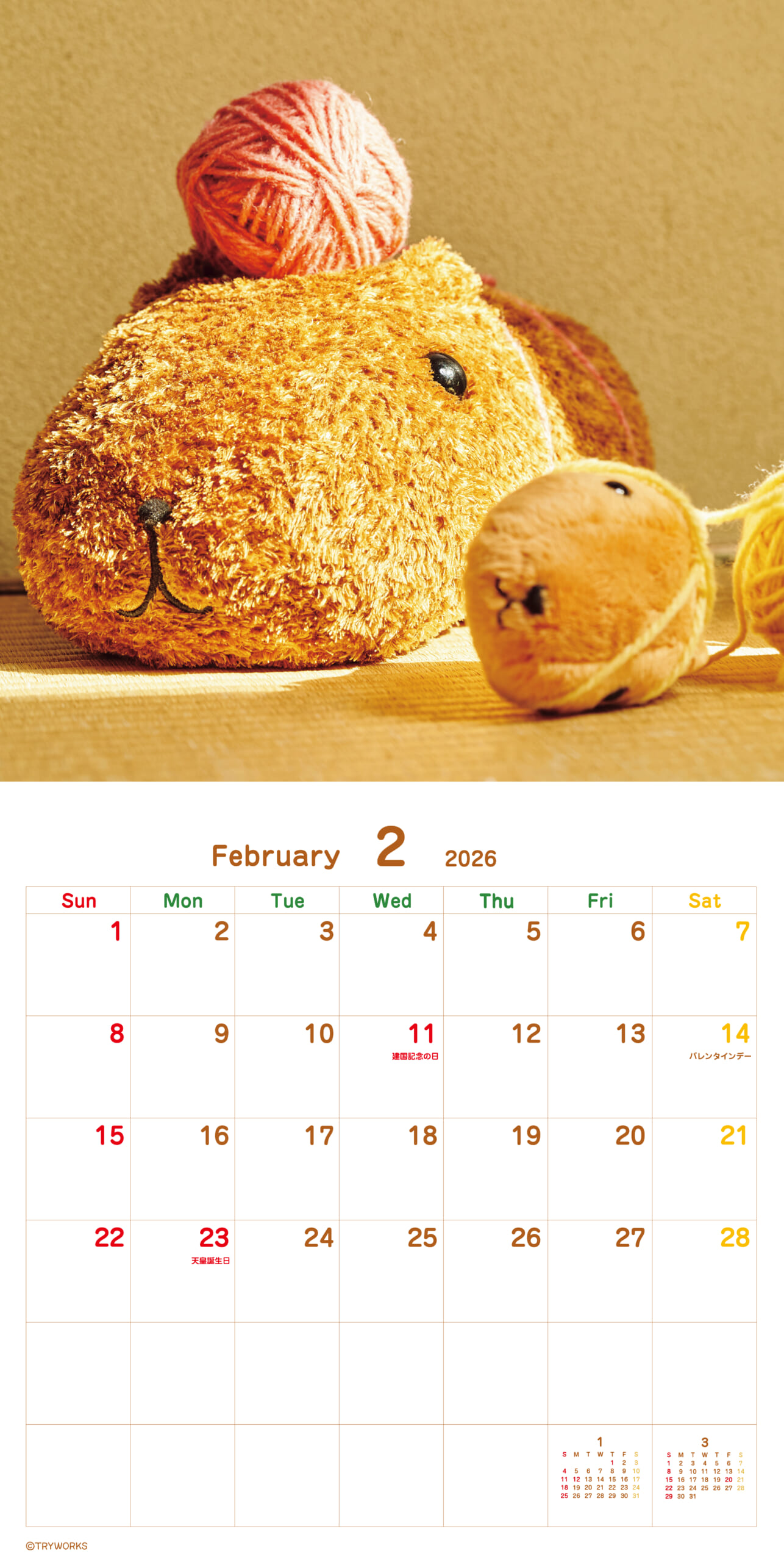 カピバラさん定番のぬい撮り写真の壁かけカレンダー。